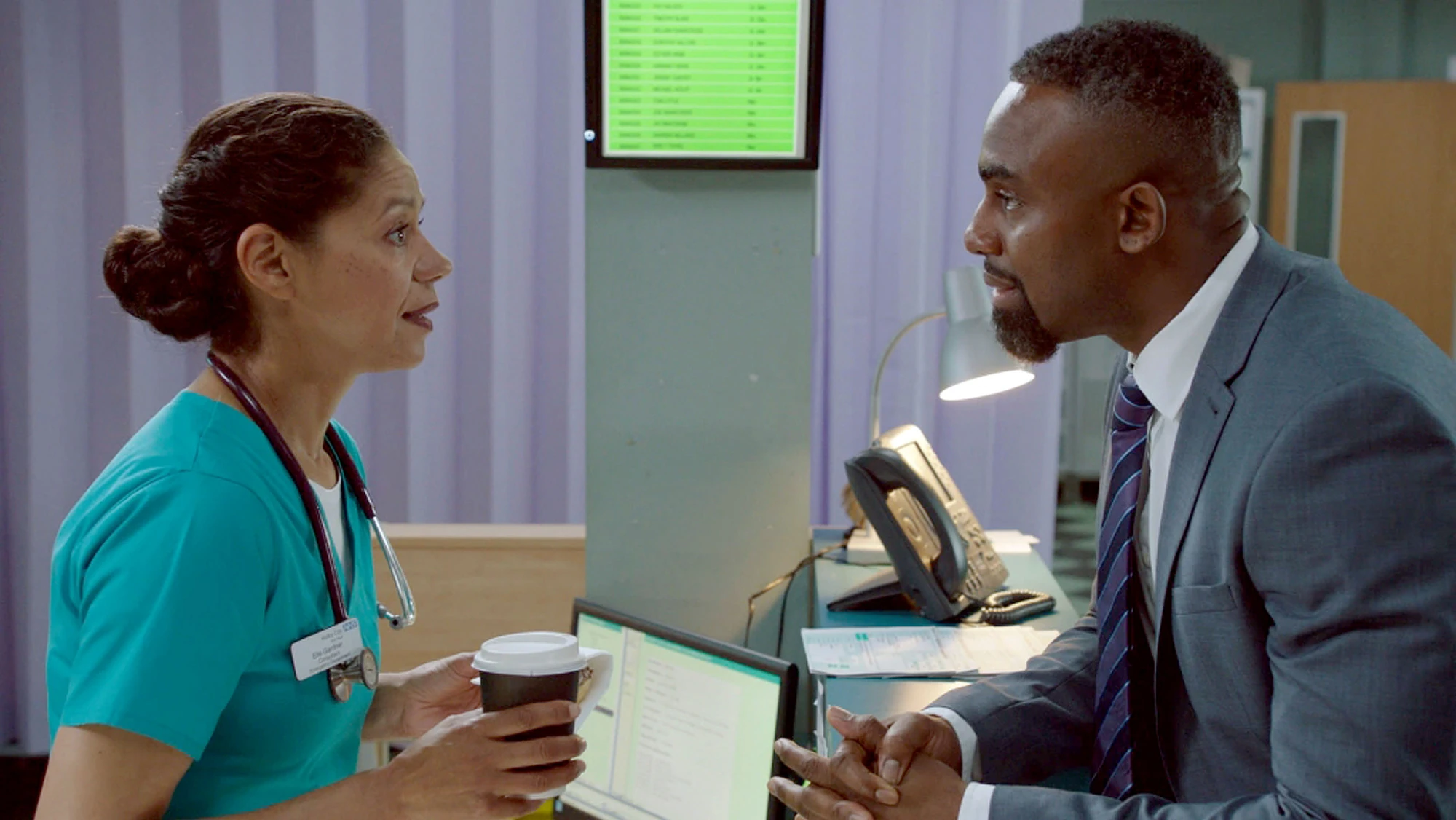 In HDC, Dylan explained to Omo that her pancreatic tumour was pushing against the wall of her stomach and was about to recommend performing an endoscopy, but she refused treatment and requested to be taken back home. Jacob took issue with her decision and explained the consequences of it on her health, but Dylan reminded him that it was ultimately her decision to make. Jacob accused him of taking sides and asserted that, given her history of schizophrenia, she was incapable of making an informed decision about her health - Dylan decided to leave them alone to talk. Jacob maintained that the endoscopy was in her best interests and acknowledged to Omo that he had made decisions for her in the past, but she interrupted and claimed that they were bad decisions. To her shock, he defended his decision to have her locked up and explained that he was always afraid of her schizophrenia manifesting in addition to the thought of him developing the same hallucinations himself. She insisted that the voices in her head blamed him for her issues and would become hostile whenever she defended him. Omo questioned his insistence to have the procedure done and suggested that he did not like her very much, but he claimed that he wanted to learn.